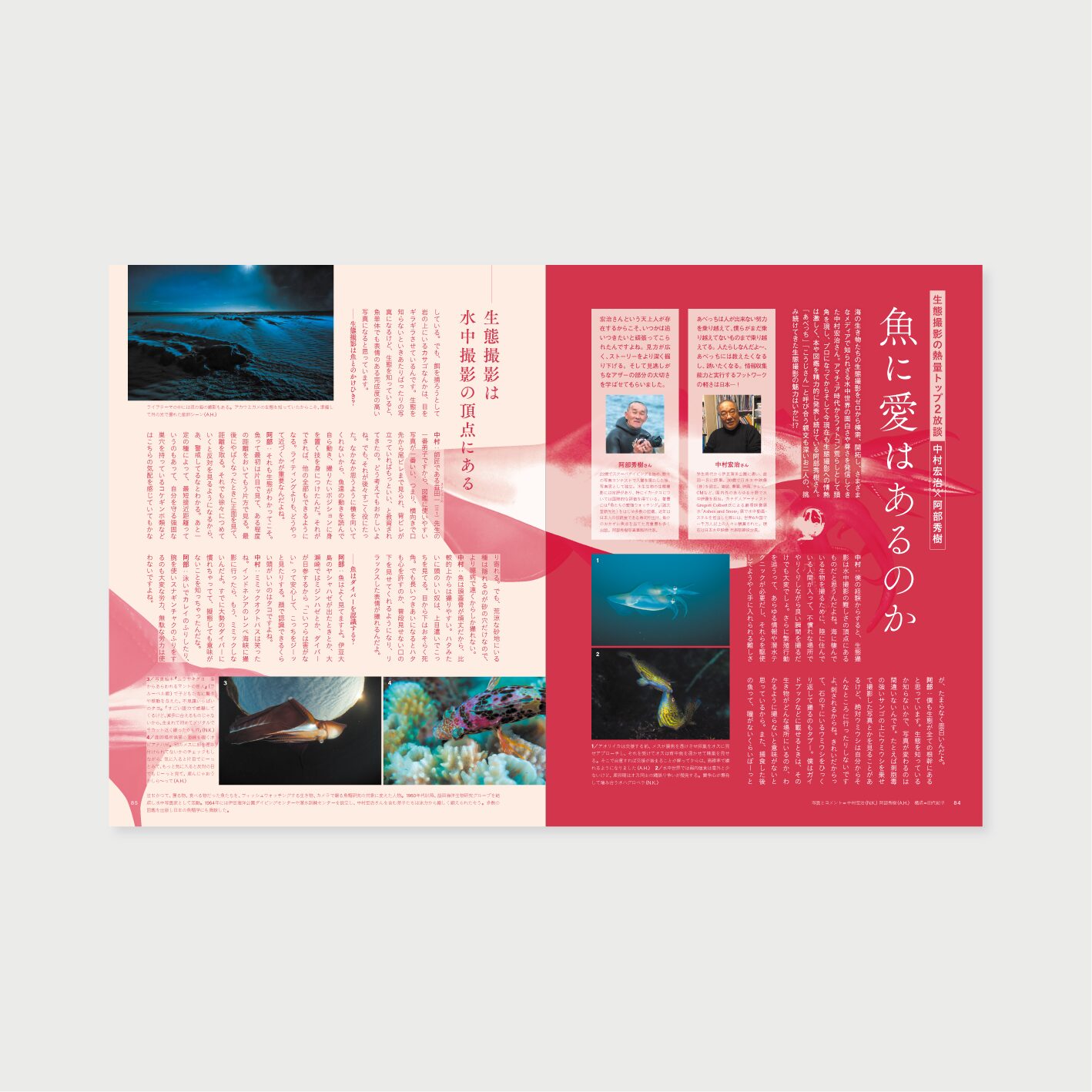 高砂さんをはじめとする写真家たちの作品は、既に完成されたビジュアル表現です。その世界観を損なわぬよう、写真は大きく配置して装飾を最小限に抑え、テキストの量や位置も丁寧に調整。読者の方が写真の世界に没入し、ダイビングを追体験をしていただけるような誌面を目指しました。